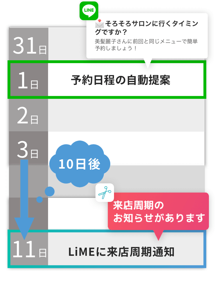 お客様の来店周期の10日前に